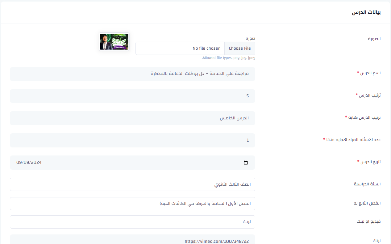 - إدارة المحتوى التعليمي والدروس المتاحة للطلاب مع منع التحميل وطلب الاطلاع علي الفديو اولا للتاكد ان الطالب قام بأنشاء دفعه ناجحه