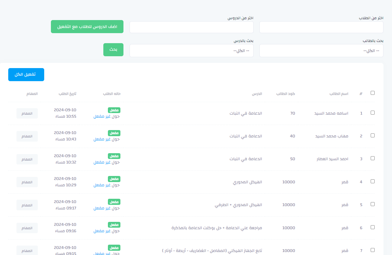- إدارة بيانات الطلاب المسجلين في النظام.